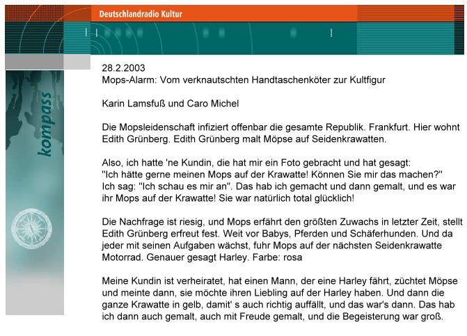 Interview im Hessischen Rundfunk am 7.3.2003 in der Sendung HR3 pop & weck